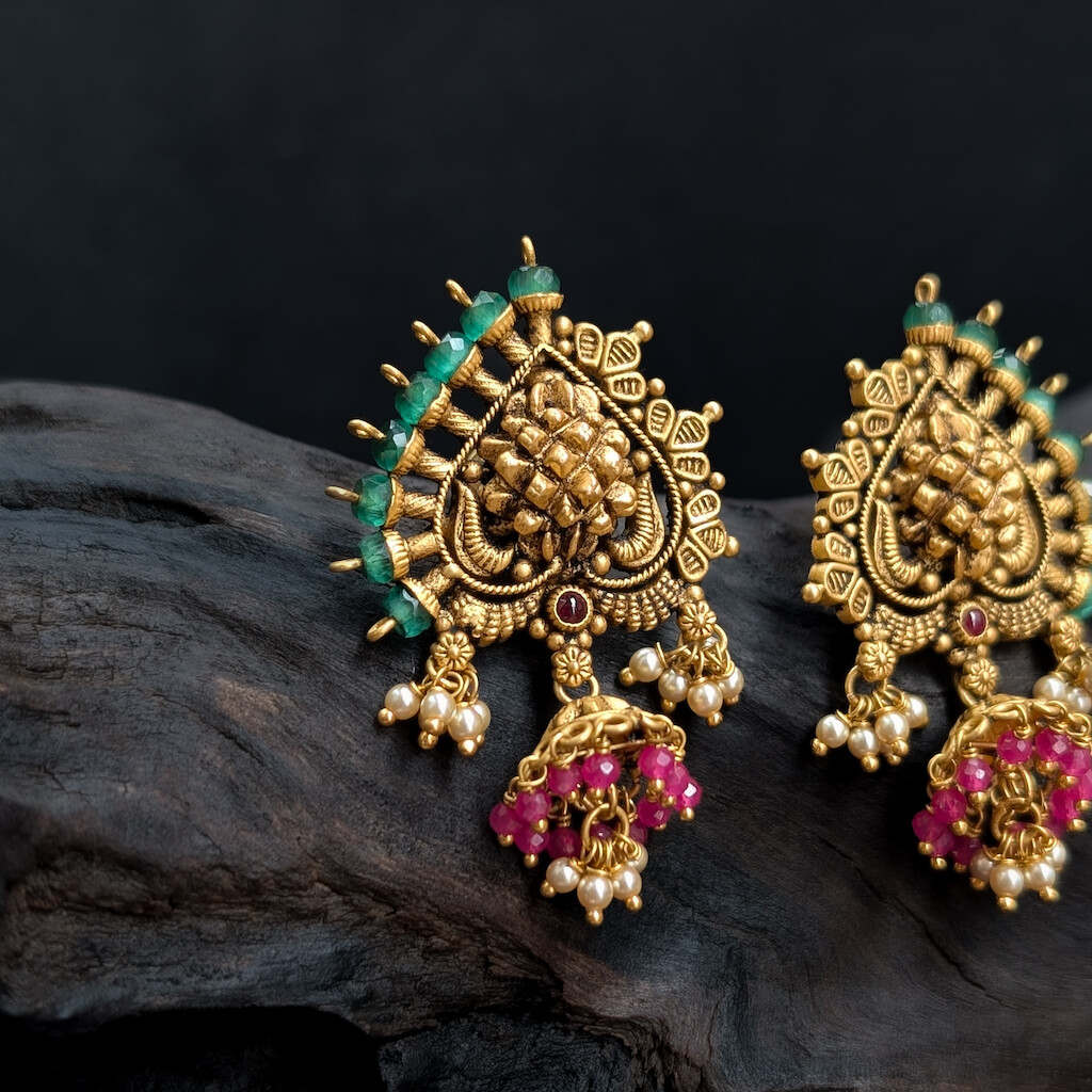 Earring – Antique EF Cob Ruby Red Green Beads Pearl