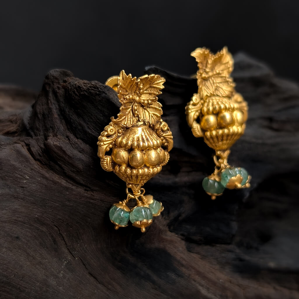 Tags: Antique, Antique Jewellery, Earrings, EF, Electro Forming, Gifts For Her, Green Bead, South Screw, Women