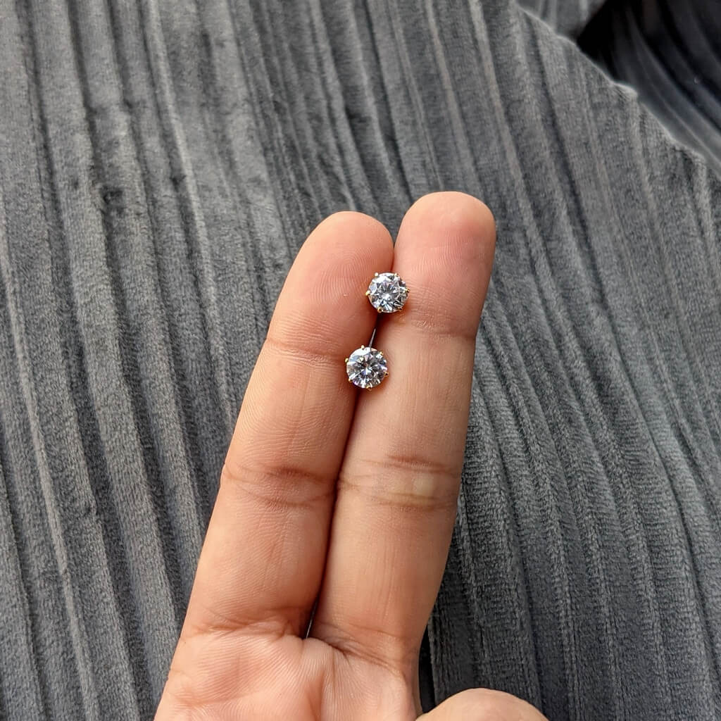 Earring – 6 Prong Set Solitaire 6mm Round White Cz
