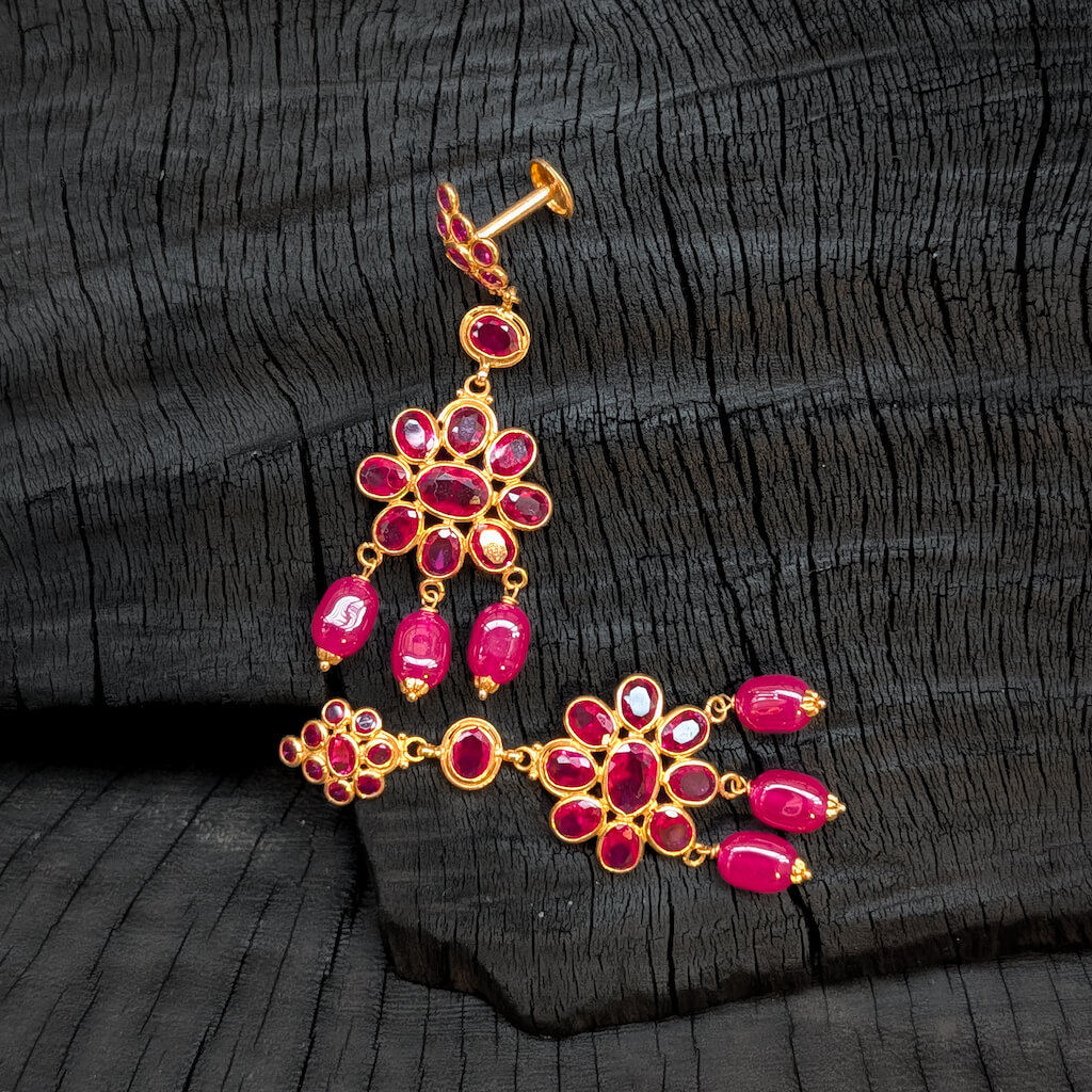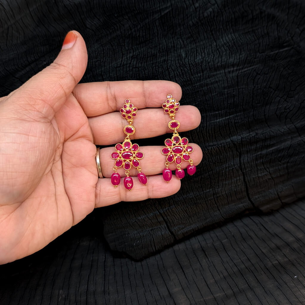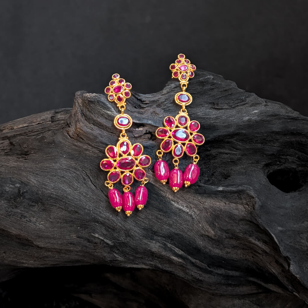 Tags: Color CZ, CZ, Earring, Gemstone Jewellery, Gifts For Her, Jadau, Red Bead, Red Stone, South Screw, Synthetic Polki, Women