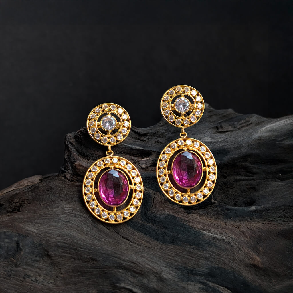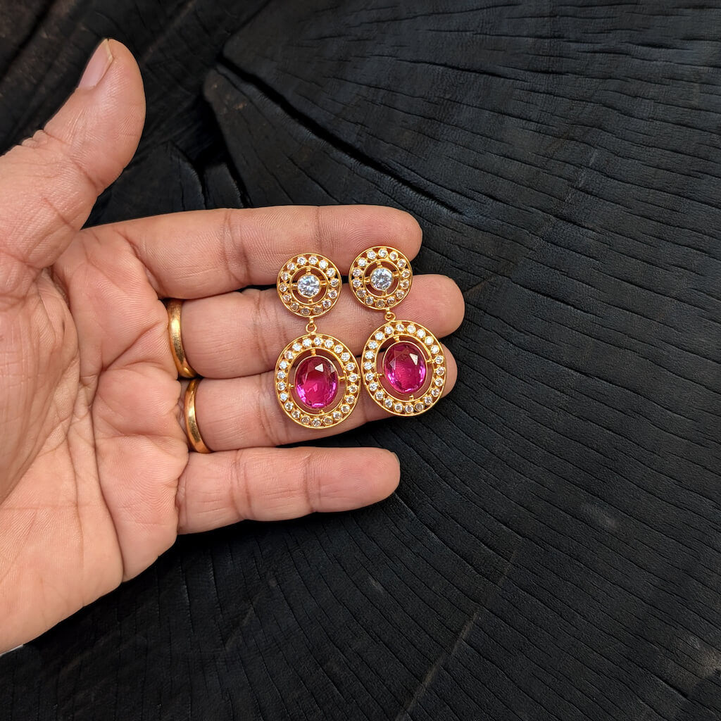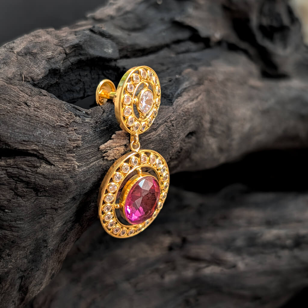 Tags: Color CZ, CZ, Earring, Gemstone Jewellery, Gifts For Her, Jadau, Pinkish Red Stone, South Screw, Synthetic Polki, Women