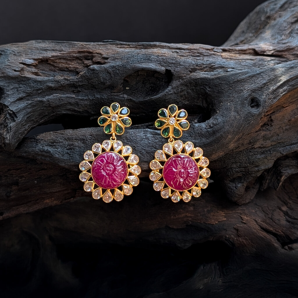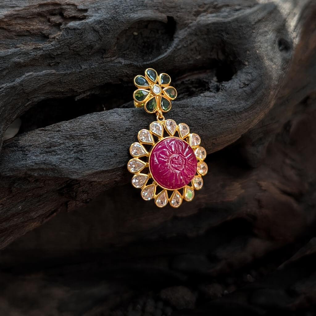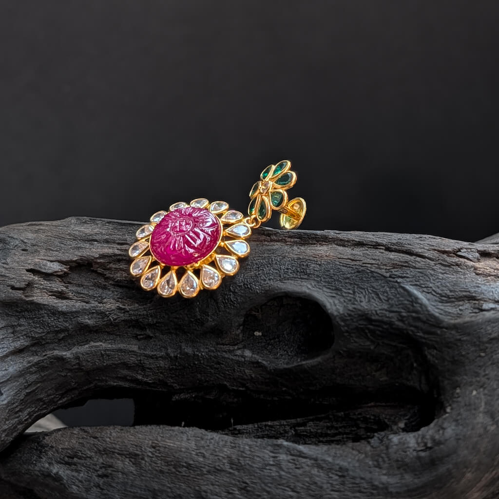 Tags: Color CZ, CZ, Earring, Gemstone Jewellery, Gifts For Her, Green Stone, Jadau, Red Stone, South Screw, Synthetic Polki, Women