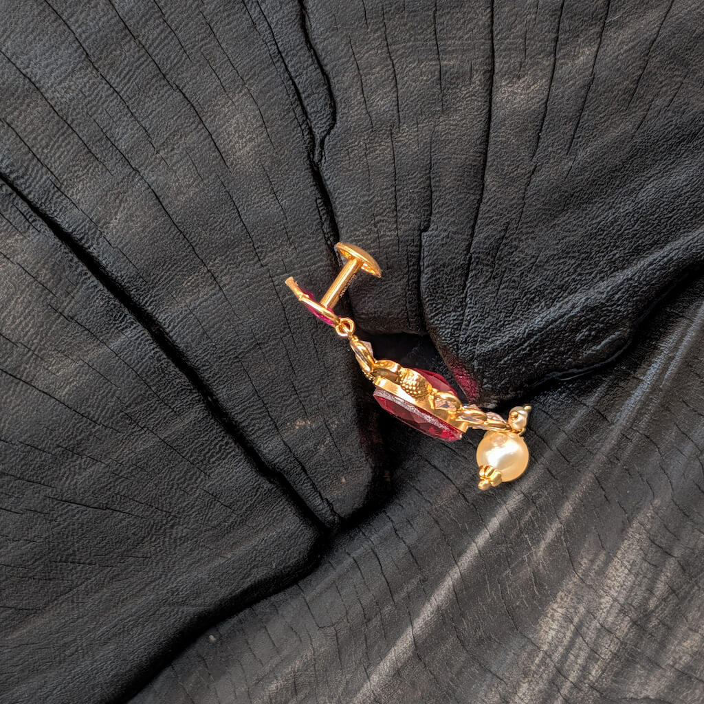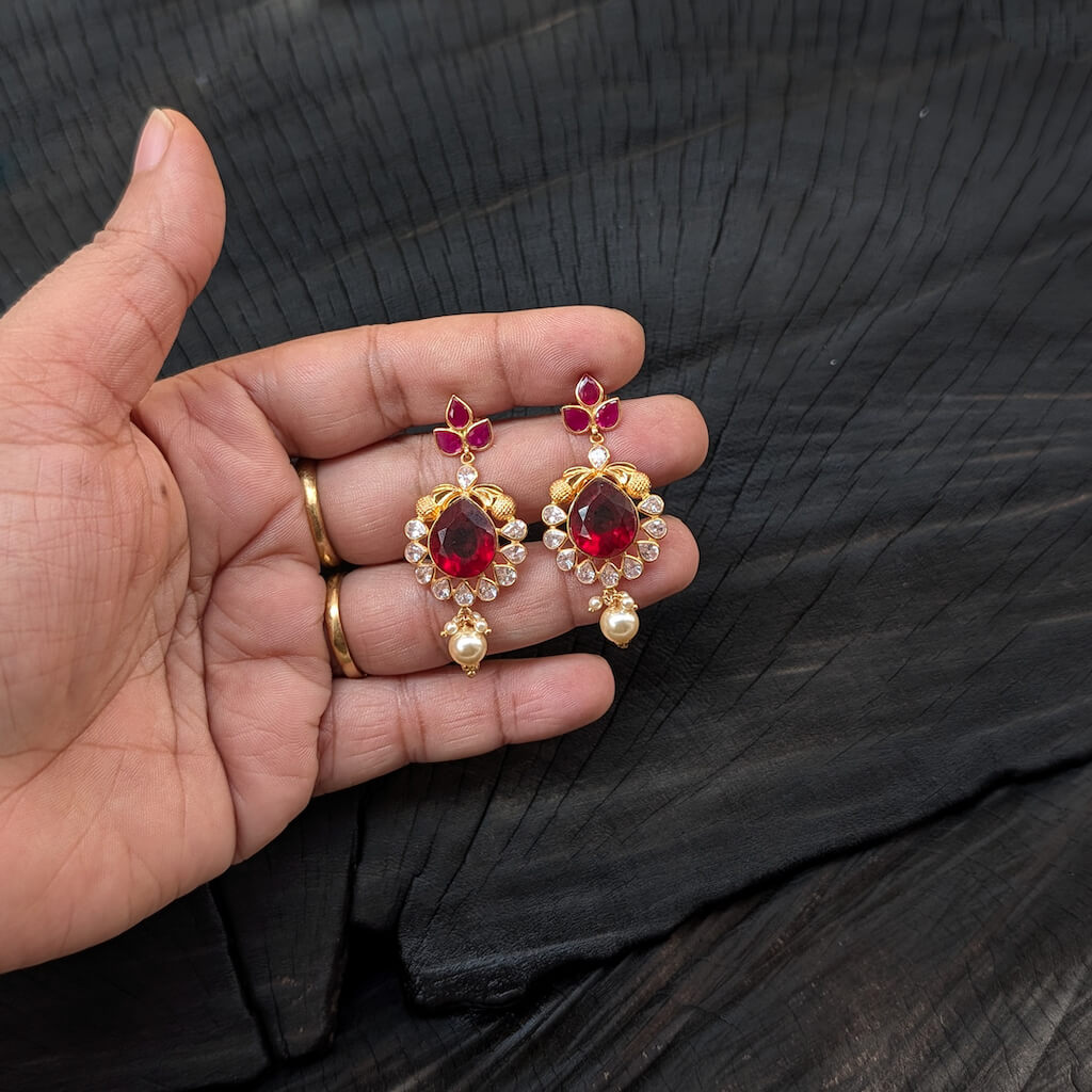 Tags: Color CZ, CZ, Earring, Gemstone Jewellery, Gifts For Her, Jadau, Pearl, Red Stone, South Screw, Synthetic Polki, Women