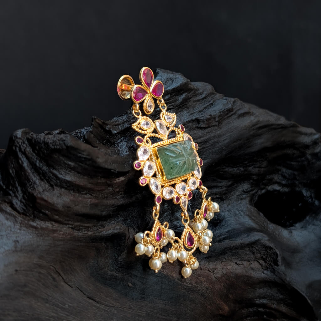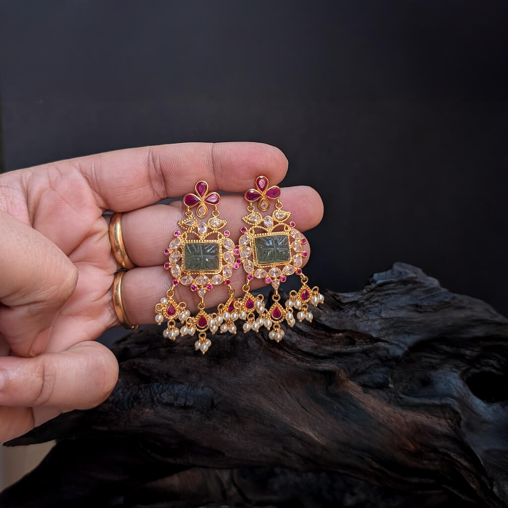 Tags: Color CZ, CZ, Earring, Gemstone Jewellery, Gifts For Her, Green Stone, Jadau, Pearl, Red Stone, South Screw, Synthetic Polki, Women